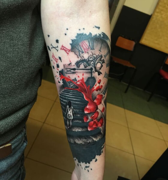 My Latest Trash Polka Tattoo Design Was Inspired By The Constant Fight Against Time We Are Trying To Live Faster And Faster But We Don T Really Live Then Everything Falls Apart